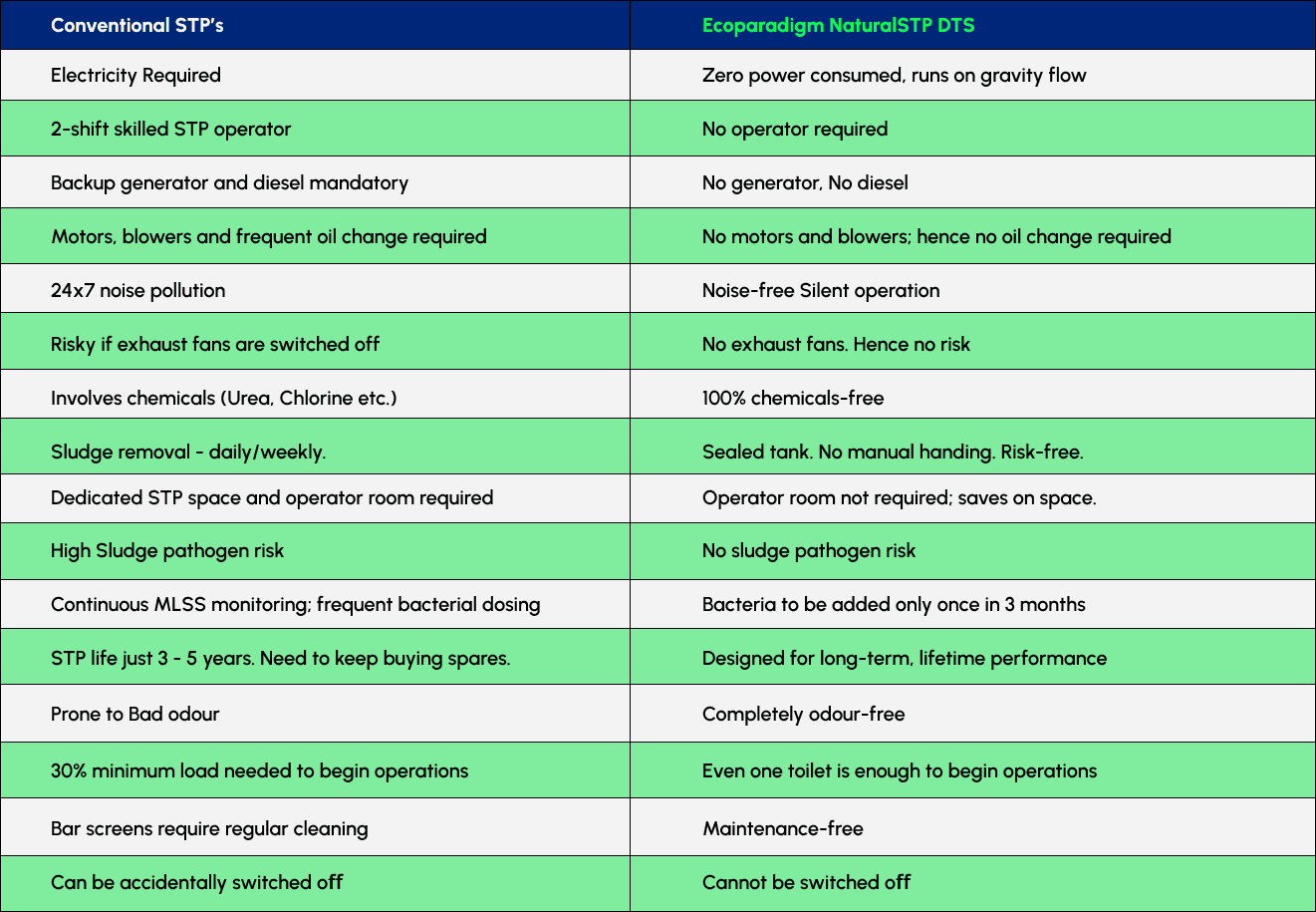 Eliminate electricity bills, regulatory fines, and operational stress with India's most reliable underground, non-electric wastewater treatment system. Pioneered by Ecoparadigm